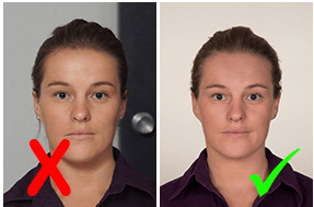 The passport photo size (50mm x 40mm) in general. The photo should be clear and the background must be plain, white or off-white in color. The height of the head should be between 28mm – 33mm.The head width has to be between 21mm–24mm. Submit a color photo, taken in the last 6 months. Use a clear image of your face. Passport photo should not use filters on the face or take your photo from someone else or selfies. Take off your eyeglasses for your photo. Here is the sample of Passport Size Photo.