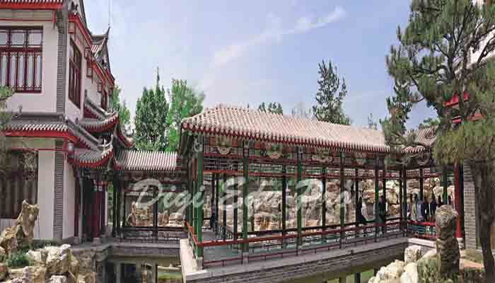 The north district is controlled by ancient Chinese buildings. The architectural style of the Ming and Qing Dynasties, with columns, beams, shun & other main construction, interior decorative painting, sculpture, mural, reproduction of ancient temples of solemn and mysterious. The Lao-Zhuang hall, the pavilion, the shadow wall corridor are equal to the building of the great momentum of the Tang Dynasty. In the library, the green brick door, the wooden window, the black tile white wall, and the building are integrated with the building, which shows the elegance of the building of the emblem.
