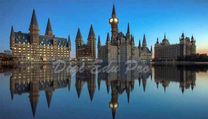 At present, we are strongly applying to become a national 5 A scenic spot. The school has 2 districts—south and north. The south district is based on European architectural style, Gothic magic castles, Roman art exhibition center, Baroque art museum, together with European classical gardens. A comprehensive display of western religious art. The world bridge art exhibition hall, the castle corridor exhibition hall, the octagonally shaped sculpture exhibition hall, launched the famous sculpture pictures exhibition. In the art empire square, the towering bell tower, the elegant arch window, the sculpture of the Goddess of victory and the tall western knight attracted domestic and foreign scholars and tourists. It also becomes a place for large activities such as graduation ceremony and large parties.