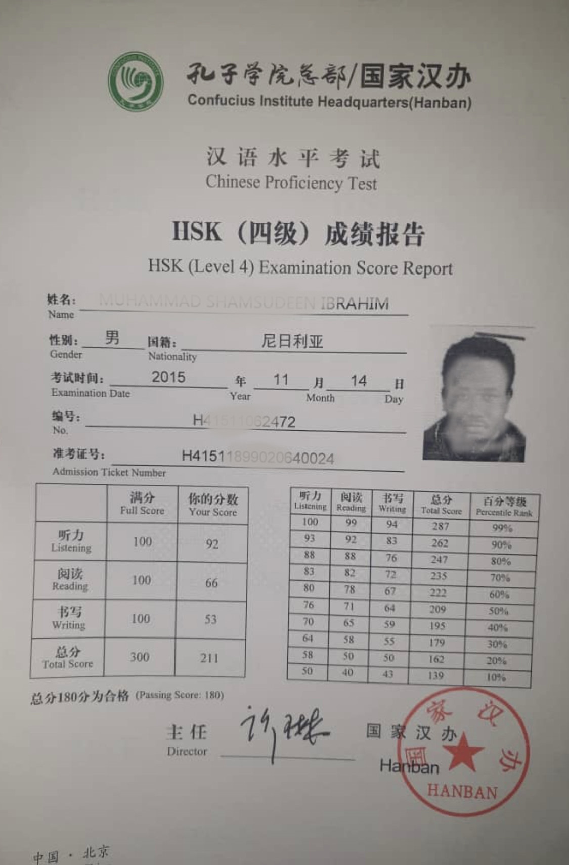 If you want to study in Chinese taught and want to get CSC scholarship then you must have to submit HSK certificate of proficiency in Chinese. HSK is not mandatory for English taught, but if you have it will be beneficial for you. HSK supervised by the HSK Center of Beijing Language and Culture University to judge the Chinese language skill of non-native speakers. See the sample of HSK certificate of proficiency in Chinese.